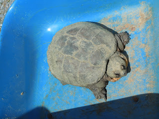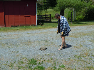 We live in the boonies, y'all. So imagine our surprise one morning recently when the dog started barking like crazy and we look out the window to find a HUGE turtle walking across our driveway.